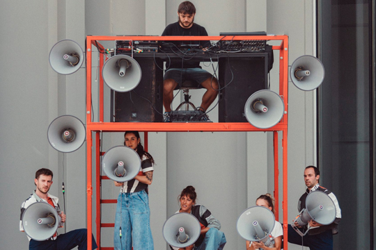 protagonista. Dantzarien eskuetan dauden bozgorailuek,
