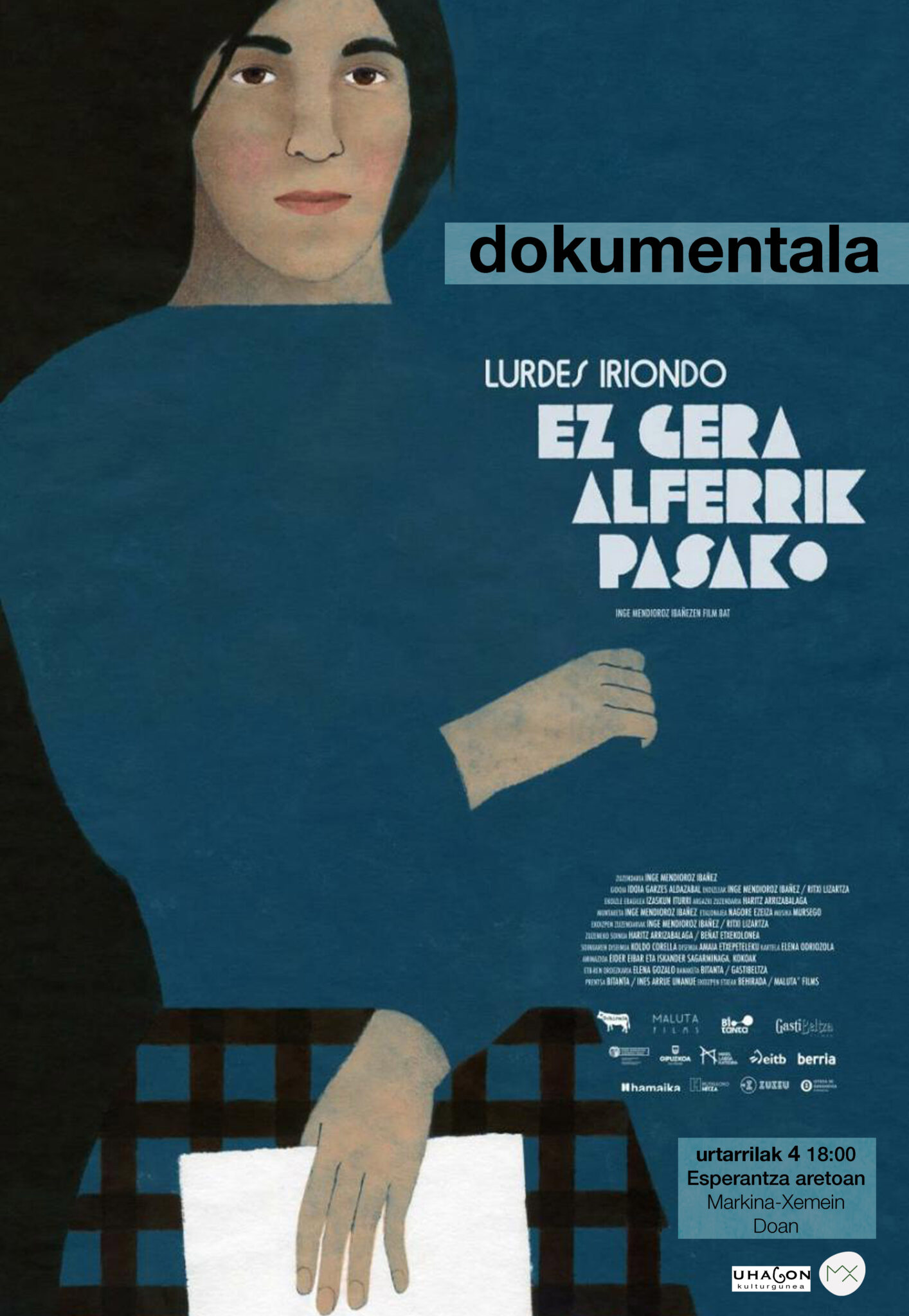 Informazio gehiago"LURDES IRIONDO, EZ GERA ALFERRIK PASAKO" Ausarta eta konprometituta, bere ahotsarekin euskal musika eraldatzen eta euskara aldarrikatzen lagundu zuen. Dokumetal emanaldia Esperantza aretoan 18:00etan hasita Doan